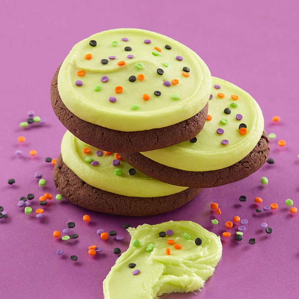 - 6 Halloween Sprinkle Buttercream-Frosted Chocolate Cookies